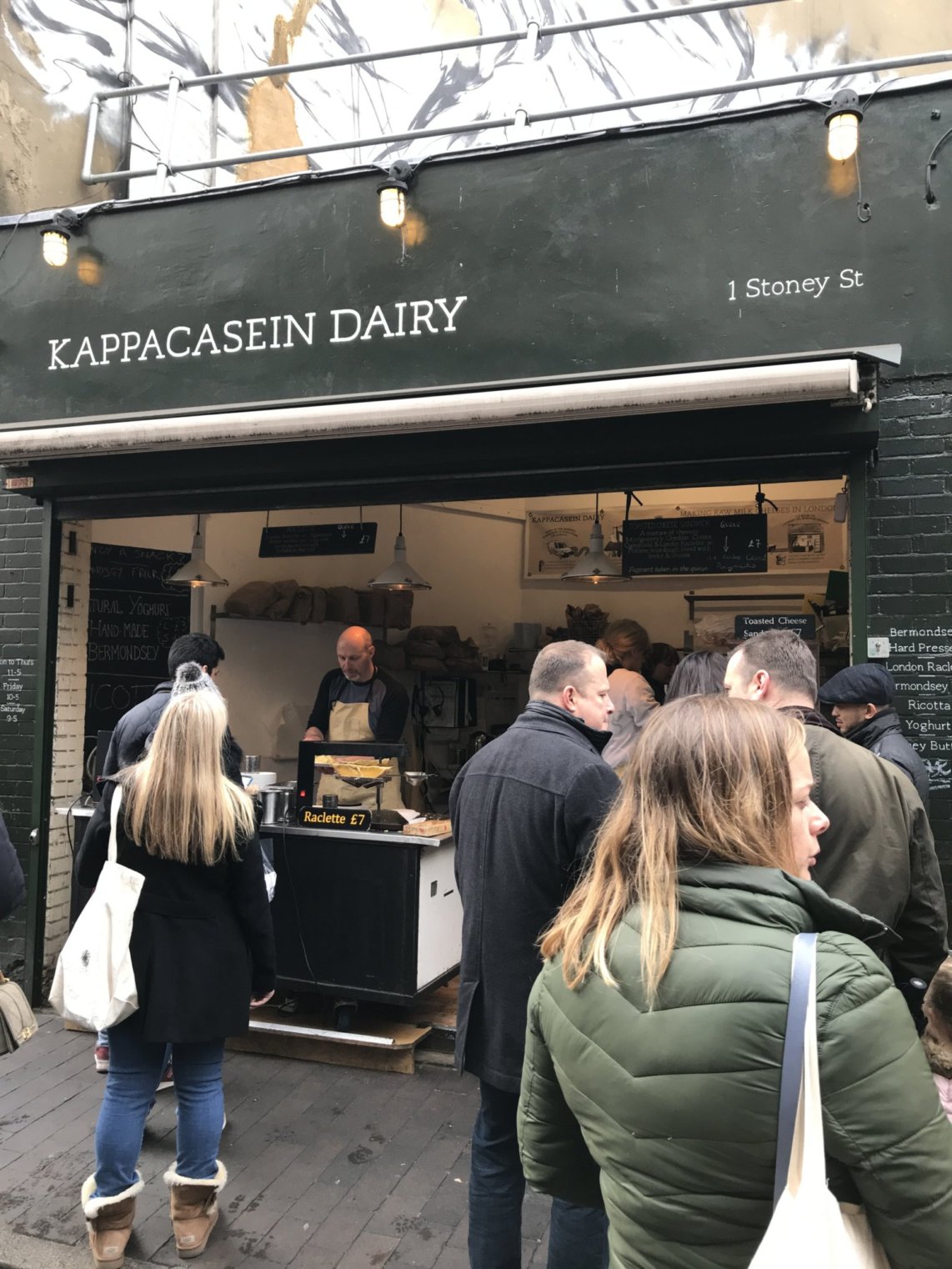 Borough Market is full of fresh veg and fruit, but also has unique restaurants and amazing pastry stands. We miss our California farmers markets so getting a taste (literally!) of what London has to offer was really enjoyable. After reading some great reviews, we decided to make a stop for a grilled cheese at the Kappacasein Dairy stall. It is everything you think it will be. Gooey deliciousness in between two slices of sourdough bread.