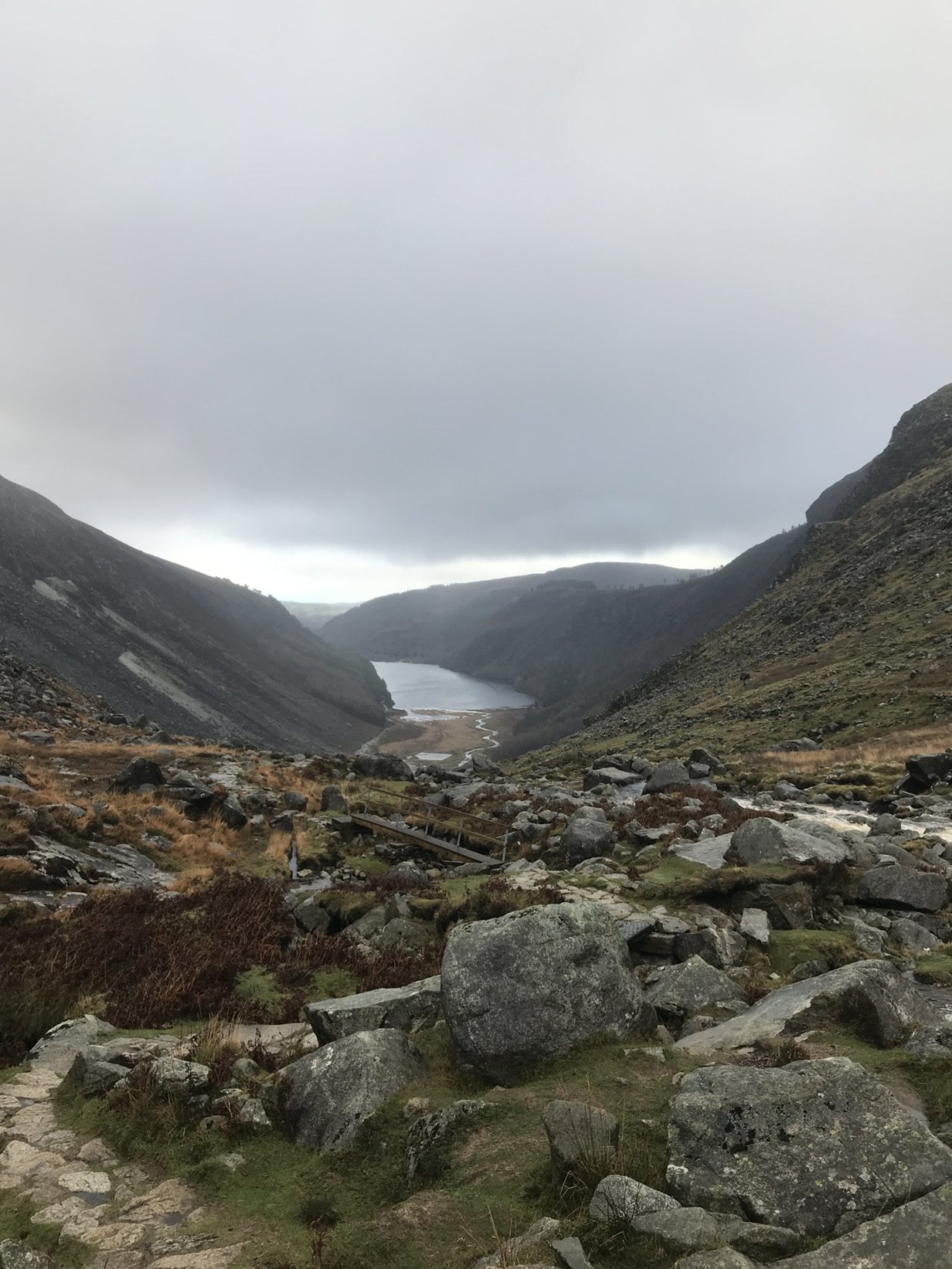 The drive down South to Glendalough was about an hour and a half. We weren’t sure what to expect but we were captivated by the beautiful Glendalough Upper Lake. The lower and upper lakes are located in the Southern side of the Wicklow Mountains National Park. We walked through the cemetery and by the lower lake and then only had enough time to take in the view of upper lake for a few minutes. We knew we wanted to go back and do the loop hike around the lake and sure enough we were back in a few weeks to hike with some friends.