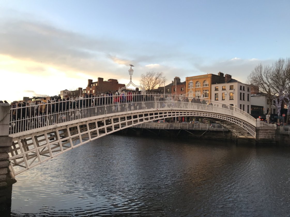 After a pint, head over to the Liffey River and take in the view of Ha’Penny Bridge. This bridge was the first iron bridge built in 1816 and cost half a penny to cross in 1919, giving it its iconic name. Cross the bridge and keep on walking along the Liffey for about 15 minutes until you get to Smithfield where Jameson distillery is located on Bow Street. I would suggest booking the tour and tasting ahead of time so you can keep to your schedule. There are some really tasty places to eat near the distillery in Smithfield and if your hungry I recommend My Meat Wagon or Thundercut Alley. They both sound weird and Thundercut Alley’s vibe is funky but they serve delicious food.