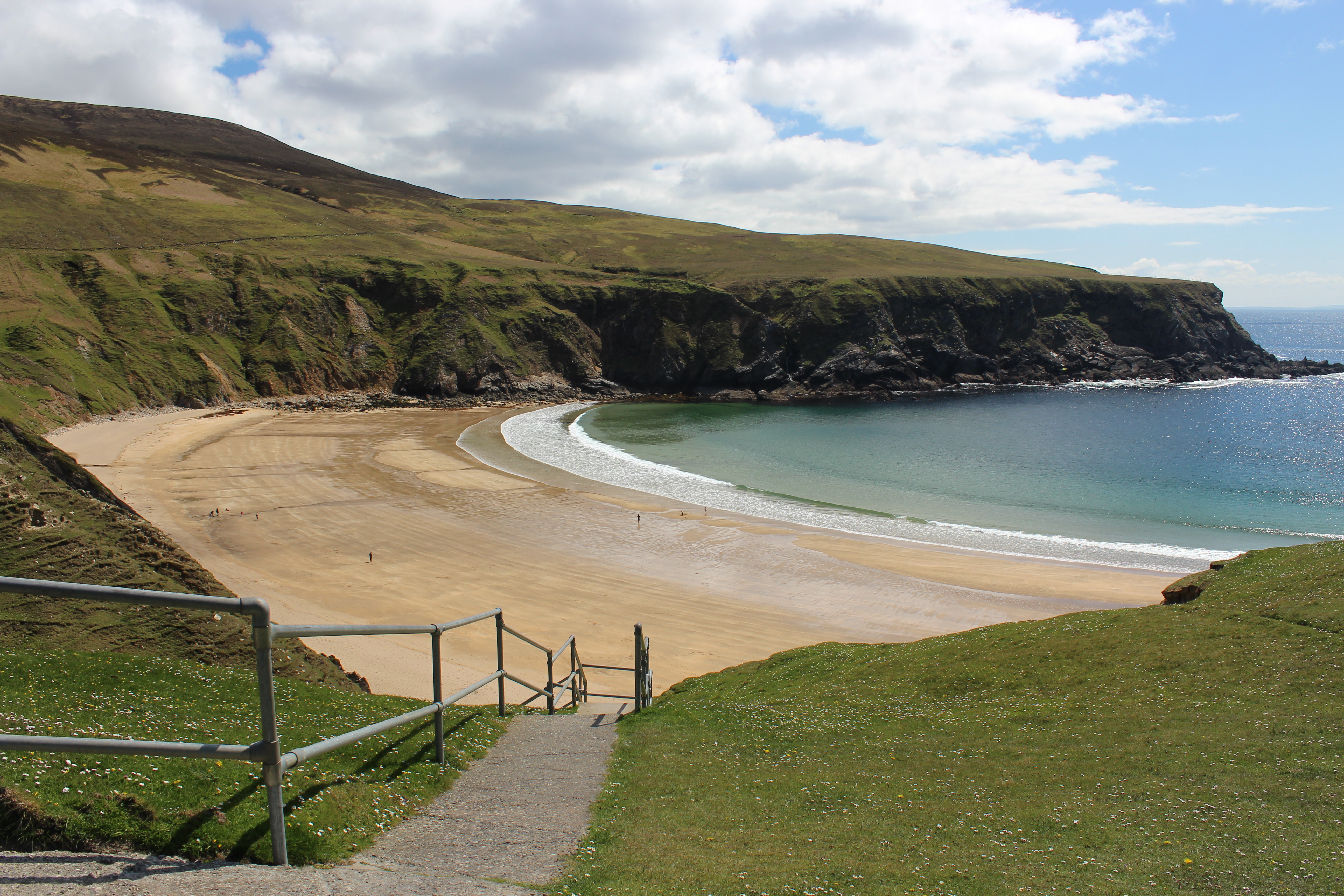 From the Silver Strand, we continued on to our next stop, Slieve League. We parked at the first parking lot but soon discovered you can drive past the gate, along the coastal road, and park at the end of the road right where the views of the cliffs are located. I’ve read a lot of blogs that compare Slieve League to the Cliffs of Moher and I have to say that I don’t think they should be compared. They are both beautiful in their own right and offer glorious views of the ocean and cliffs. Slieve League is a ways out there so it takes more planning than if you just hop on a tour from Galway or Doolin to see the Cliffs of Moher, but the isolation of Slieve League does make for a unique experience. We would have spent more time hiking around these cliffs, but one of us wasn’t feeling well (I’m not going to name names, but Matt… It was Matt.) so we decided to hop back in the car and head to Donegal.