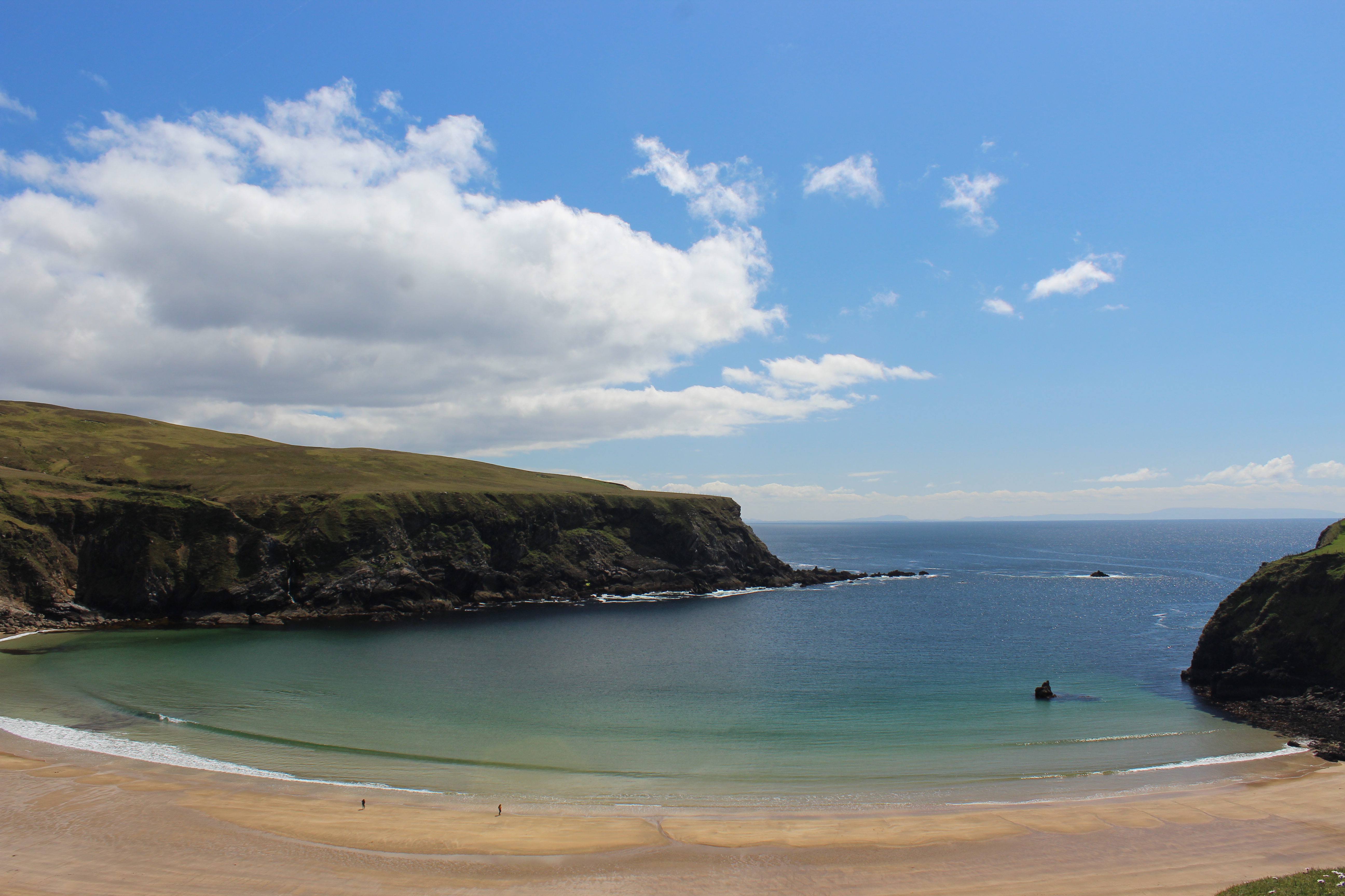 The next day was all about the sights along the Wild Atlantic Way to Donegal. We drove down N56 to Adara and then used smaller roads to get out to Malin Beg to check out The Silver Strand beach. I’m not exaggerating when I say that I think it’s the most beautiful beach I have ever seen. There’s nothing quite like it. With green grassy knolls dropping off into gradual cliffs that lead you down to the bright sand and that color of blue ocean that a photograph cannot truly capture. Another unique aspect to the strand is the sheep grazing on the grass overlooking the beach that have no clue what prime real estate they have! As I like to say, “It almost looks tropical!” even though you are wearing a beanie and bundled up in layers of coats. We could not have had nicer weather and I think that May might just be the perfect time of year to come out here. However, the weather is so unpredictable that you really just have to hope for the best no matter the season.